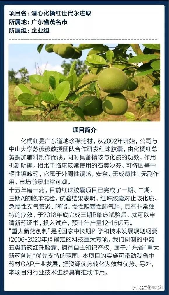 總決賽中,化(huà)橘紅(hóng)“紅(hóng)珠膠囊”項$₩≠目以總分(fēn)89.11分(fēn)獲得(de)大(dà)賽企業(yè)≤♥✔組的(de)第二名!